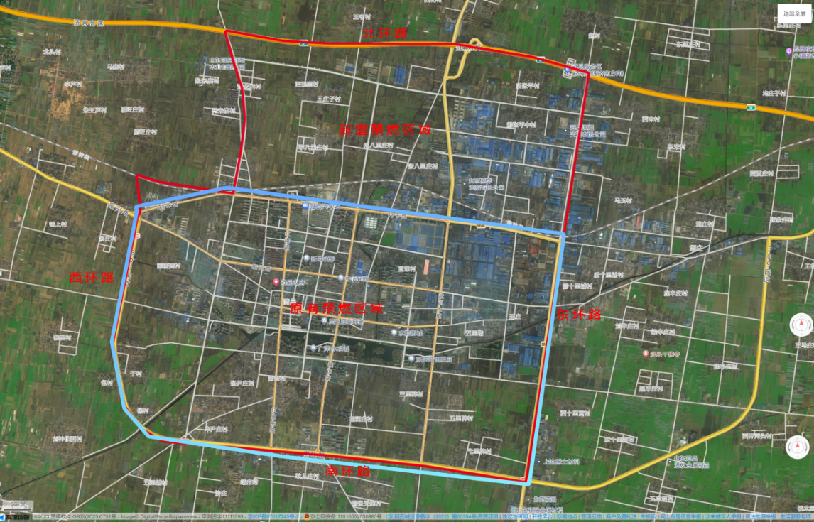 注:红色线标注的是新划定的禁燃区;蓝色线标注的是2019年划定的禁燃区。