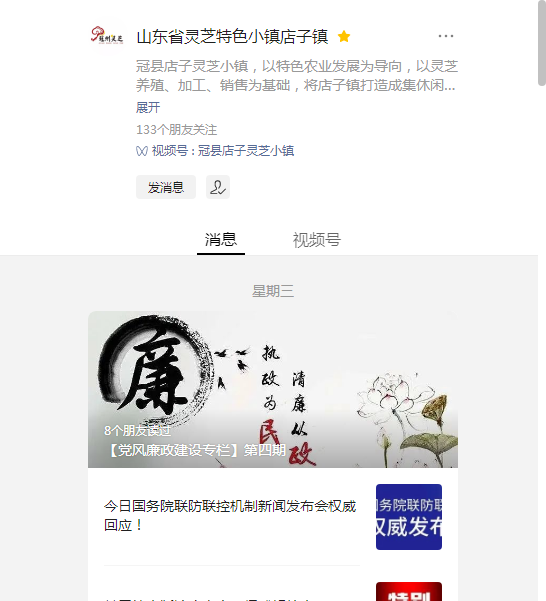 利用“山东省灵芝特色小镇店子镇”微信公众号等新媒体平台,日常发布相关会议,镇街动态、疫情防控等信息;依托政府门户网站,日常发布机构职能、部门文件、通知公告等信息;借助政务公开体验区,主动为办事群众查阅相关信息提供便捷通道。