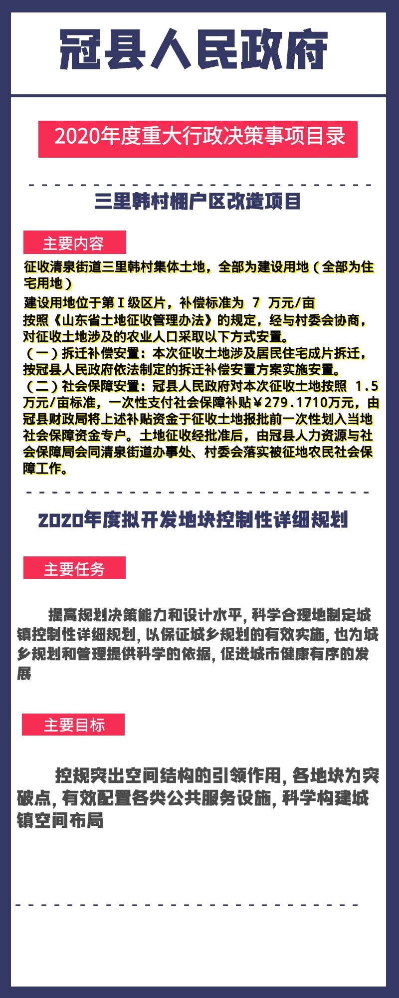 图文解读:冠县人民政府2020年度重大行政决策事项目录