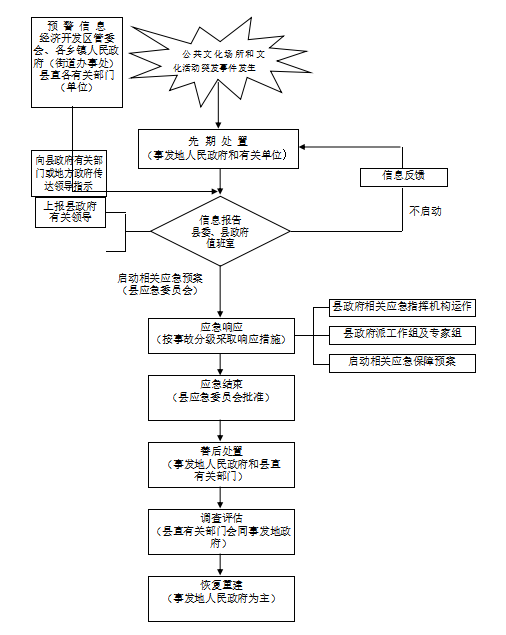 应急响应由县公共文化场所和文化活动突发事件应急指挥部组织实施,内容包括: