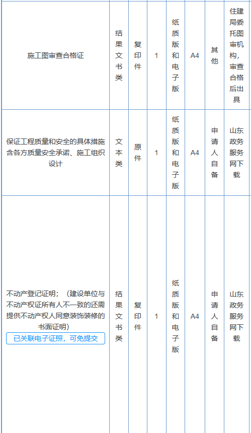4.【地方规章】《关于进一步优化房屋建筑和市政基础设施工程施工许可办理环节营商环境的通知》(鲁建建管函〔2021〕4号)第二条:合并施工许可关联手续。(一)将房屋建筑工程的“建设工程质量监督手续”“建设工程安全监督手续”“人防工程质量监督手续(防空地下室)”“建筑工程施工许可证核发”合并为“建筑工程施工许可证核发”,6月底前实行“一张表单”申请,“一个窗口”受理。将原《建筑工程施工许可证申请表(质量安全监督并联审批)》调整为《建筑工程施工许可证申请表(质量安全与人防工程监督并联审批)》,建设单位在申办施工许可证时,按照《申请表》中列明的材料清单提交相关资料,不再单独提交人防工程监督资料。