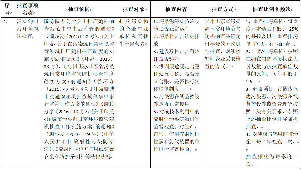 聊城市生态环境局冠县分局2020年污染源随机抽查事项清单
